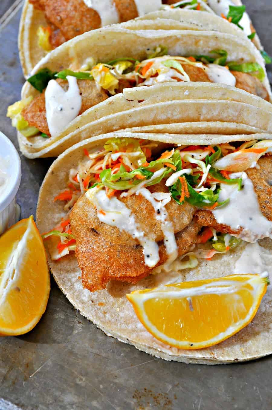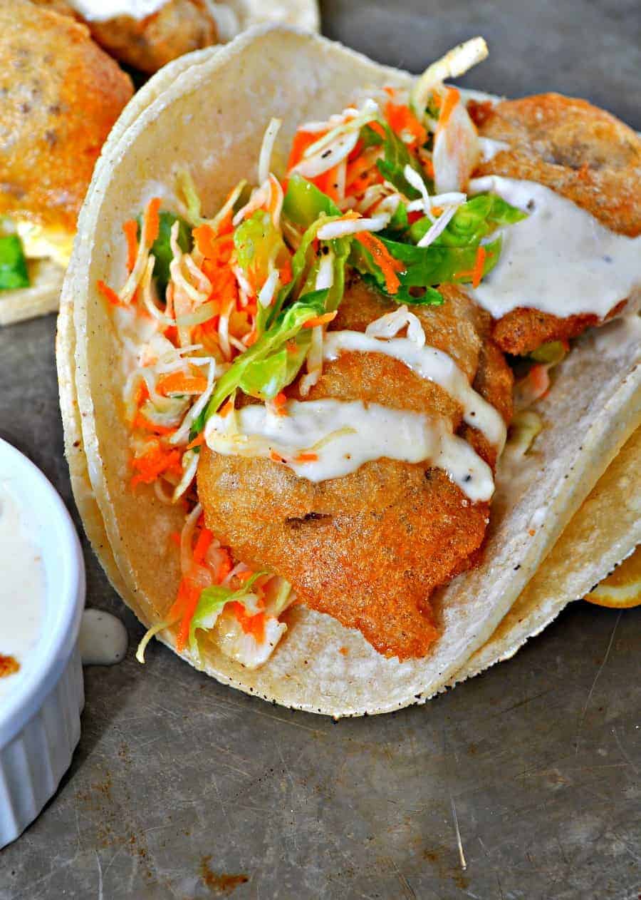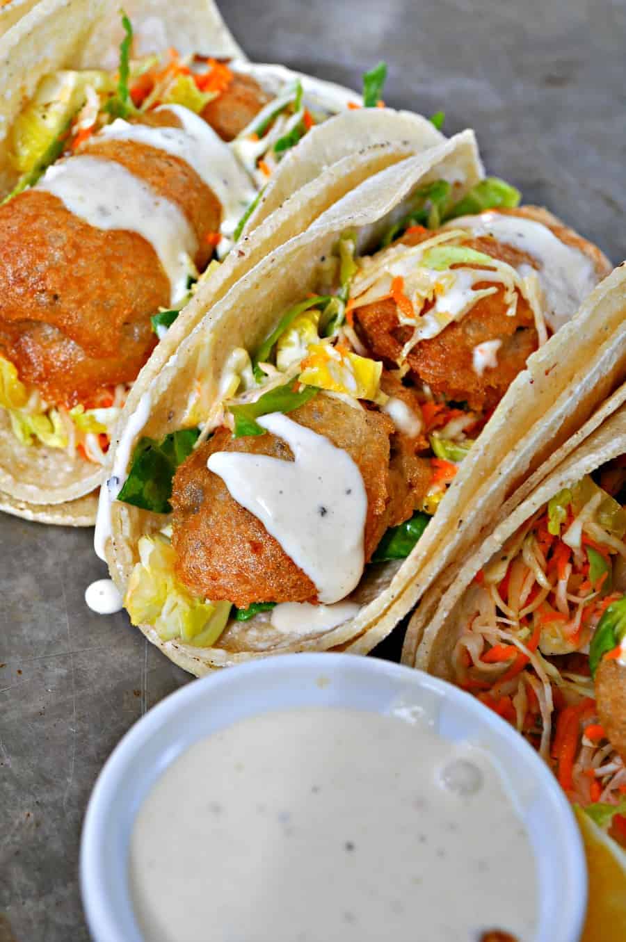 Vegan Beer Battered Mushroom Tacos with Creamy Horseradish Sauce