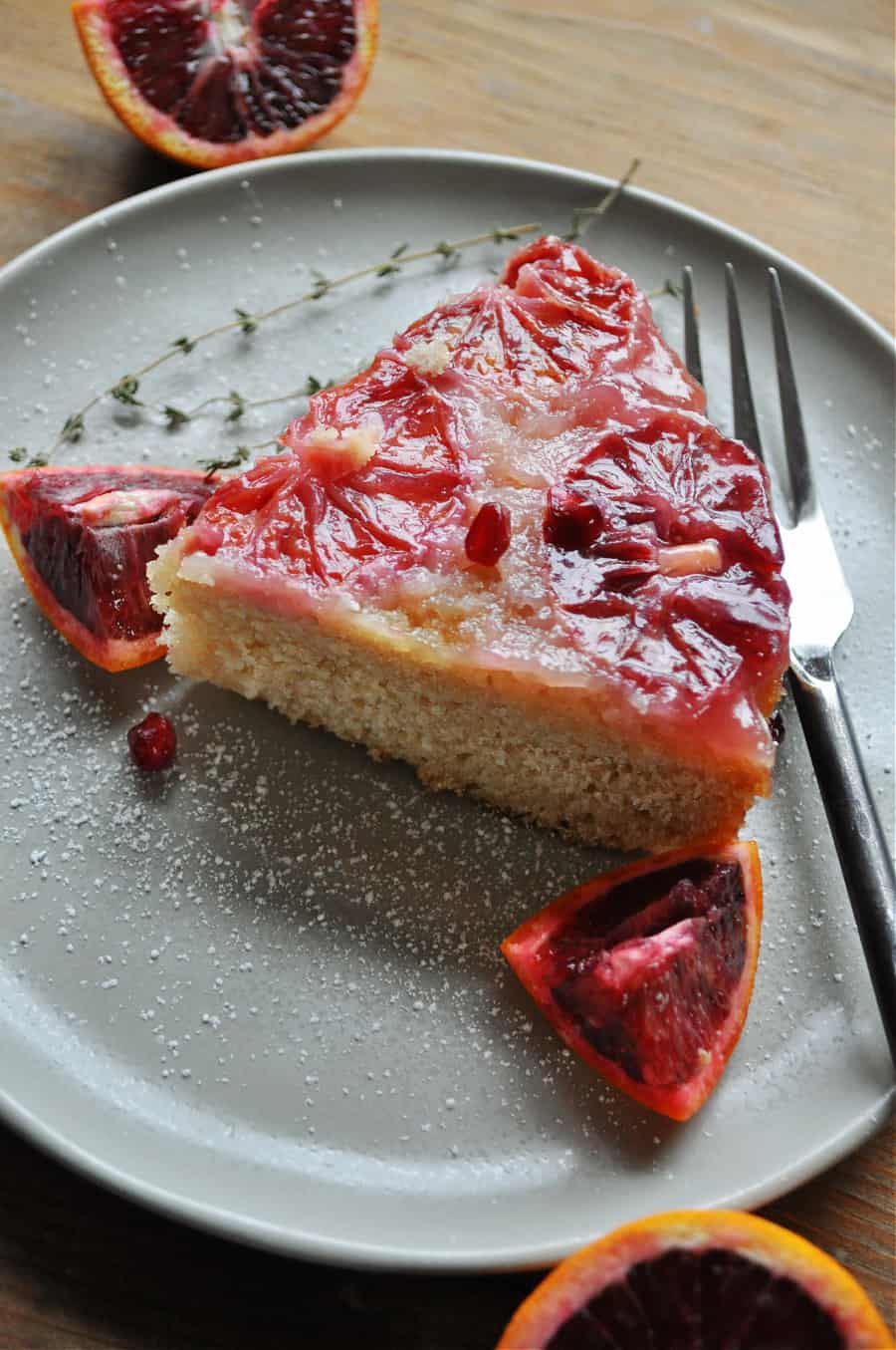 I’ll be honest, I’m not sure if I’m madly in love with blood oranges because of their flavor or because of the way they look. Whatever the reason, we can all fall in love with this vegan blood orange upside down cake! It is light and fluffy, but super flavorful. It is beautiful and here to impress anyone you make it for. It is rather simple and much easier than it looks. Melted vegan butter goes into the bottom of the cake pan. Sugar is sprinkled on top and the layer the orange slices how ever you want. That’s all you need to do to make is gorgeous.