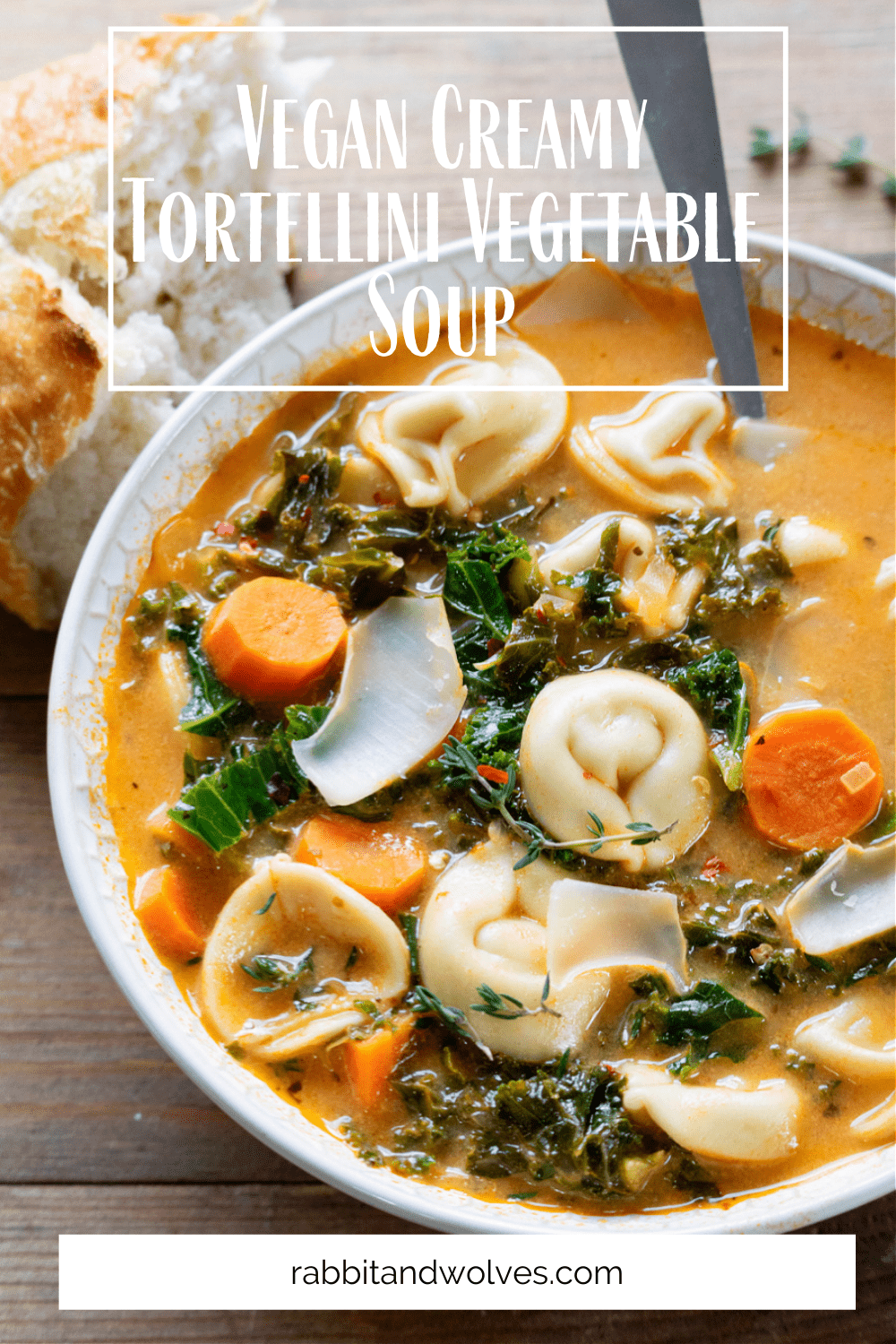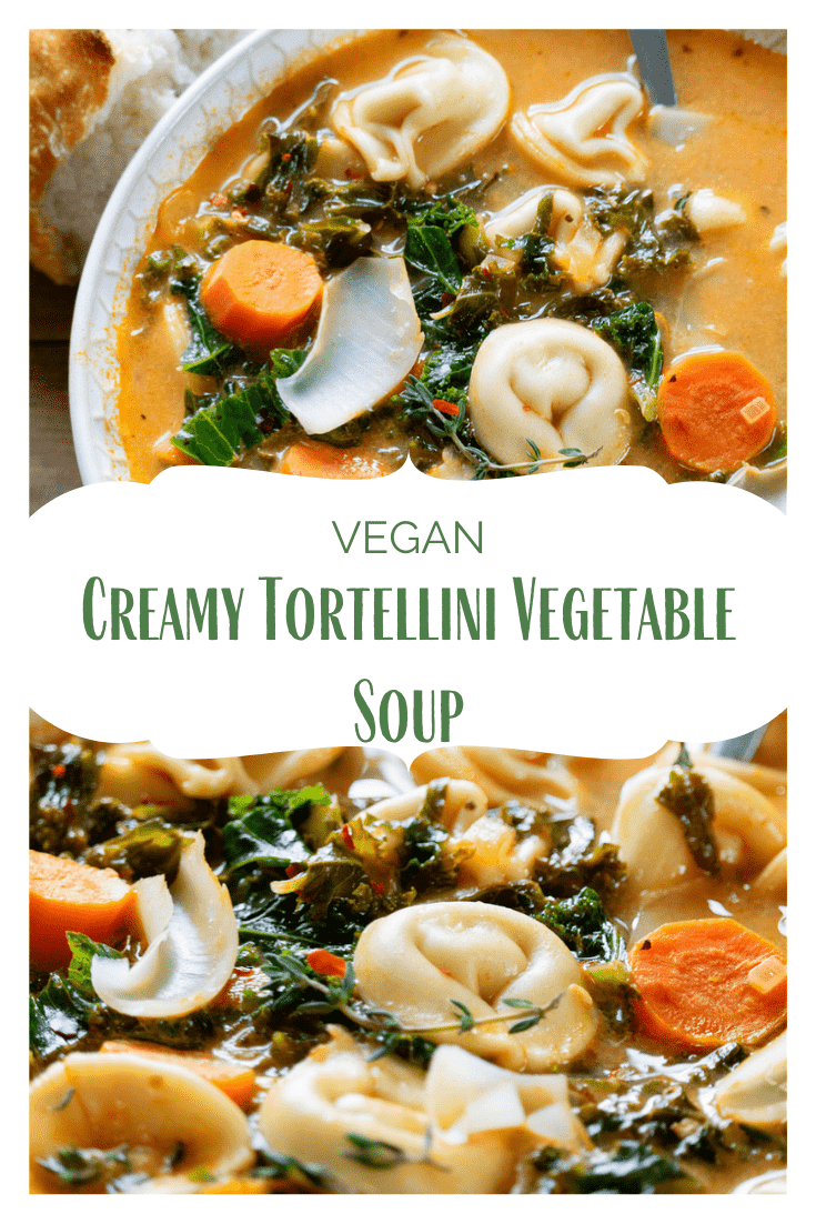 I have to be honest, every time I make this vegan creamy tortellini vegetable soup I always have to go back for a second bowl. It has even started getting chilly here in Florida and I am all about it. Snuggle up with some comfy blankets, a movie and a big bowl of this soup. Top with some grated vegan Parmesan and serve with some crusty bread. It is so so so perfect!