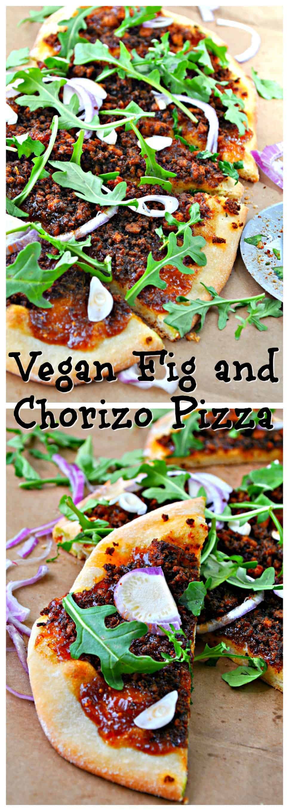 - Cover the pizza dough in fig jam, then spread the tofu chorizo over the top. Bake at 450 degrees for 10-15 minutes.