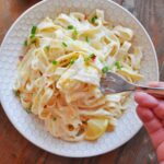 - Pasta: Obviously. This can be any kind of pasta as long as it’s vegan. I like to use fettucine, but whatever your favorite pasta is will work.