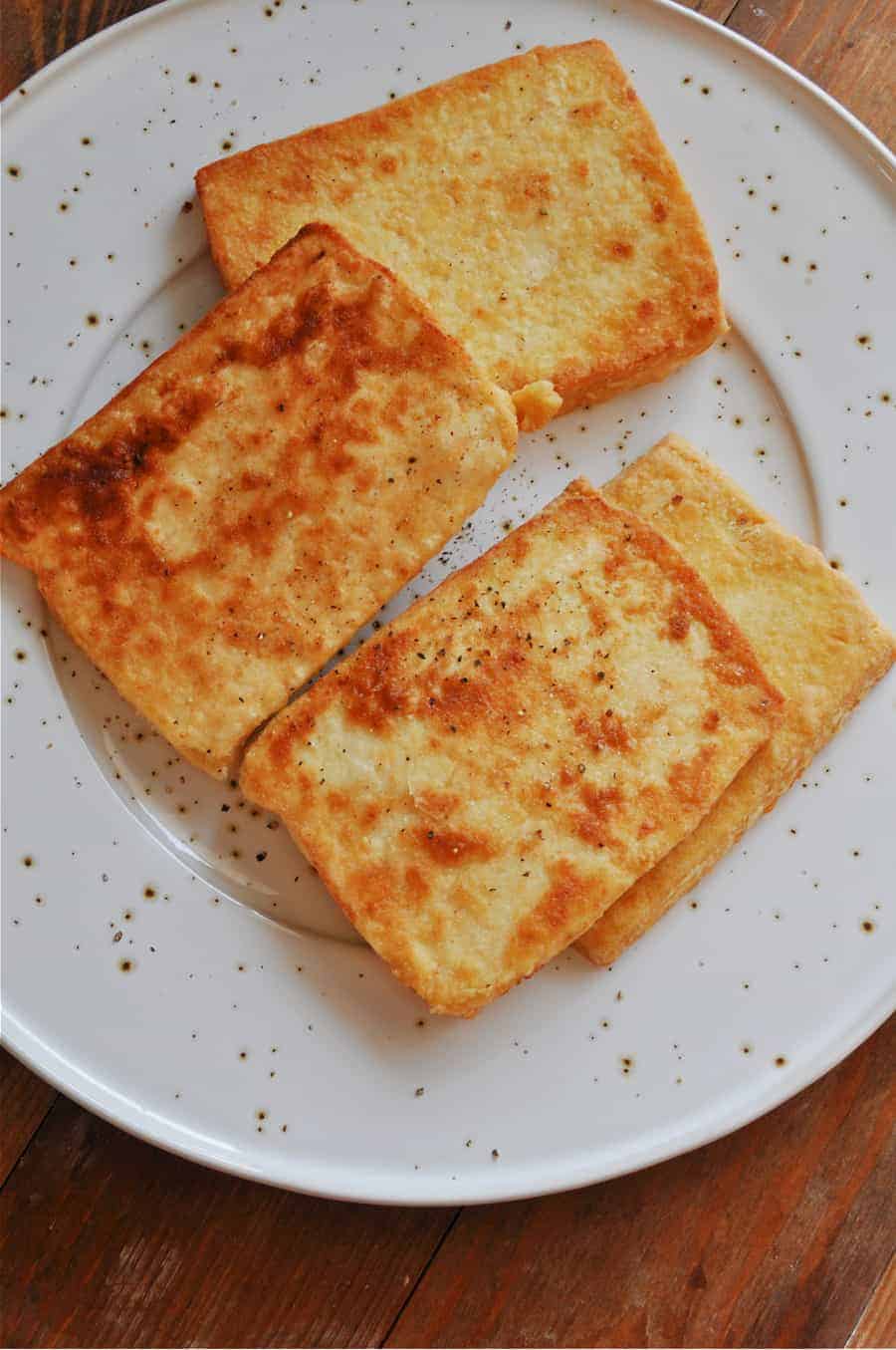 - Remove the tofu from the pan and when all the tofu is done, I like to cover it with foil to keep warm while I make the sauce.