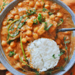 In a medium sized mixing bowl, whisk together the tomato sauce, peanut butter, cumin, coriander, cinnamon, cloves, salt and cayenne. Set aside.